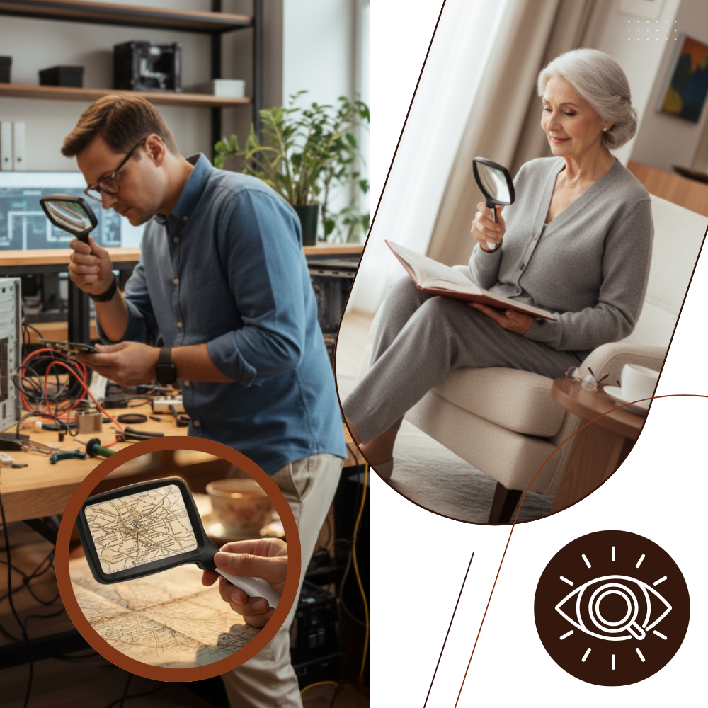 A wide lens does more than enlarge text — it helps reading feel more natural. With a broader rectangular viewing area, this magnifier allows you to see more at once, reducing the need for constant repositioning. That means lines of text are easier to follow and reading becomes less interrupted, especially with books, newspapers, documents, and packaging. Technically, it improves viewing comfort; emotionally, it makes the whole experience feel less tiring and more fluid, giving users the confidence to stay focused on what matters instead of struggling with the layout.